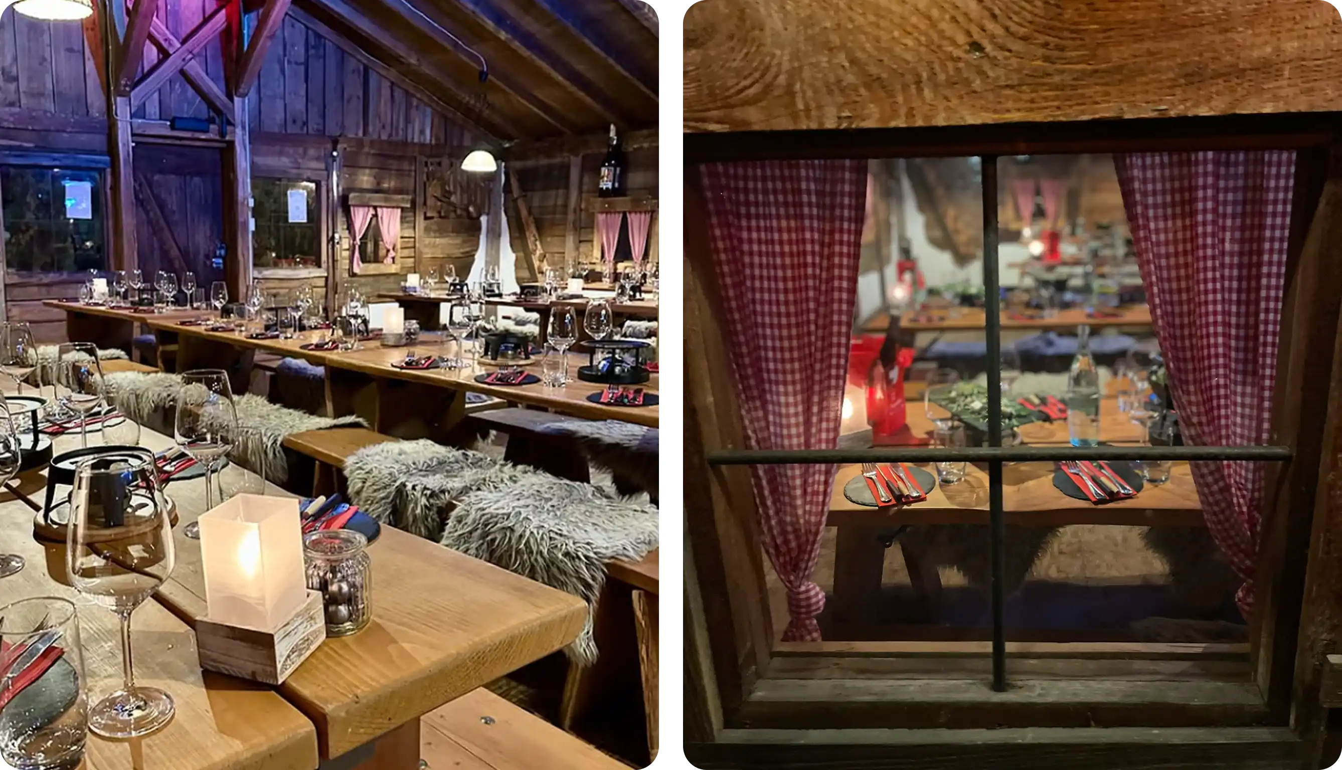 Im Inneren sorgten Felle, lange Tische und eine warme Atmosphäre schnell dafür, dass man zusammenrückt. Beim gemeinsamen Fondue-Essen blieb viel Raum für Gespräche – abseits von Meetings und Tagesgeschäft.
